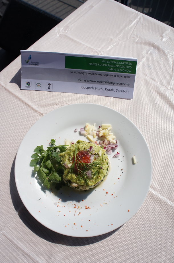 Gospoda Herbu Korab ze Szczecina za seviche z ryby regionalnej na puree ze szparagów oraz pierogi czerwone z królikiem po pomorsku.