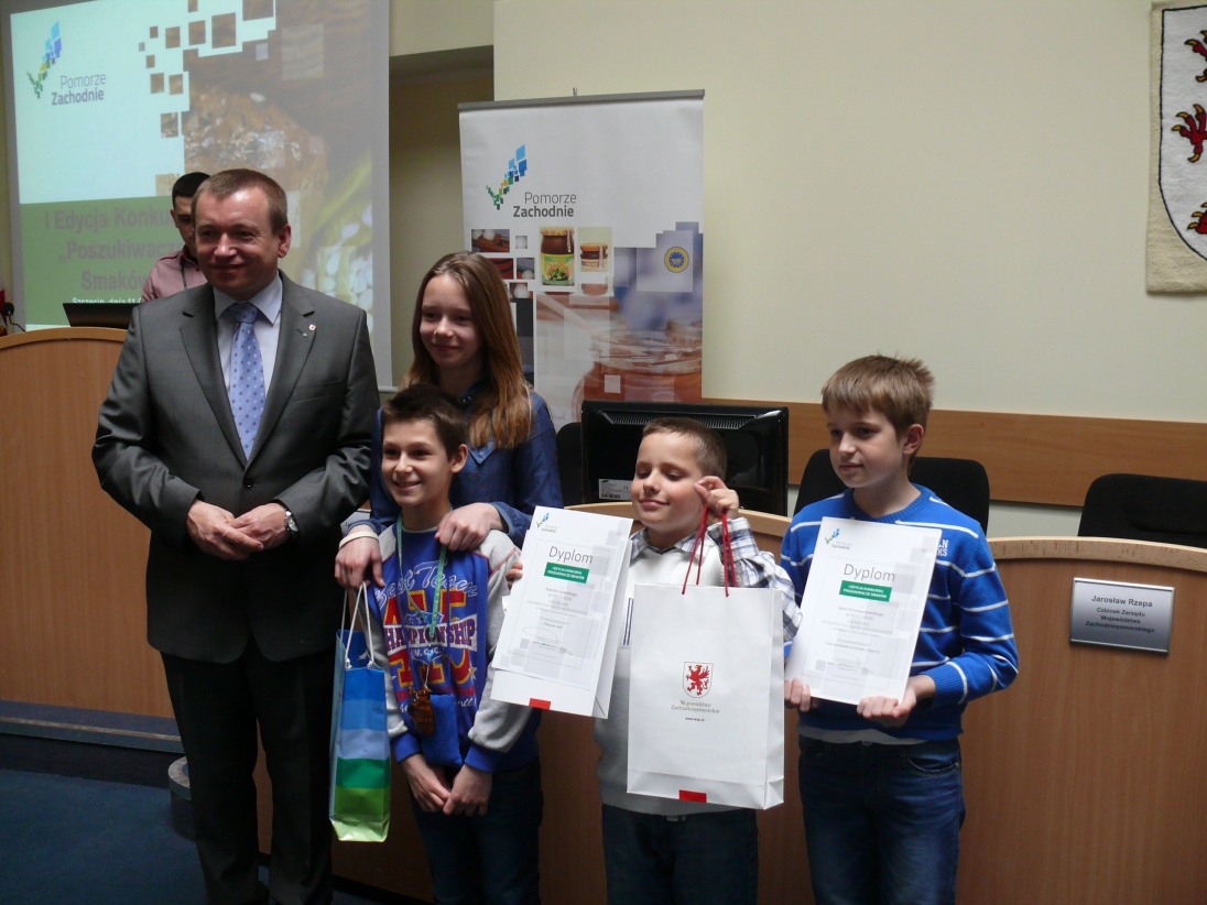 W dniu 11 kwietnia br. w siedzibie Sejmiku Województwa Zachodniopomorskiego odbyło się podsumowanie I edycji konkursu Poszukiwacze Smaków, zorganizowanego przez Zarząd Województwa Zachodniopomorskiego. W konkursie brali udział uczniowie szkół: podstawowych, gimnazjalnych i ponadgimnazjalnych, a jego celem było m.in. poszukiwanie produktów/potraw tradycyjnych, charakterystycznych dla danej rodziny, identyfikacja i gromadzenie wiedzy o tradycyjnych produktach/potrawach z terenu województwa zachodniopomorskiego, kultywowanie tożsamości regionalnej, pielęgnowanie kulinarnych więzi międzypokoleniowych, a przede wszystkim poszukiwanie produktów/potraw, które mogłyby zostać wpisane na Listę Produktów Tradycyjnych prowadzoną przez Ministra Rolnictwa i Rozwoju Wsi.
