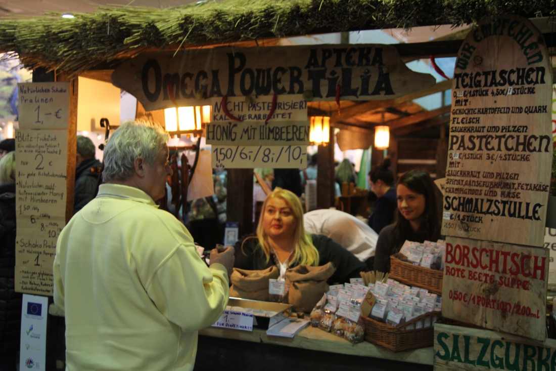 W tym roku po raz pierwszy na berlińskich targach swój asortyment przedstawiła apteka „Tilia”. Panie z apteki zachęcały do spróbowania specjalnie przygotowanych mieszanek nasion – źródła kwasów Omega 3. Na przykład specjalnie dobrane składniki z dodatkiem owoców goji i płatków kokosa pomogą utrzymać zdrową sylwetkę i obniżyć cholesterol. Nasiona dyni, słonecznika, papryki, pieprzu ziołowego i bogatej w minerały soli kamiennej to natomiast propozycja dla mężczyzn. Można też było poznać smak malinowego miodu czy czekoladek z oleju kokosowego i cukru z nektaru kokosu. To słodycze o niskim indeksie glikemicznym, po które mogą sięgnąć diabetycy.