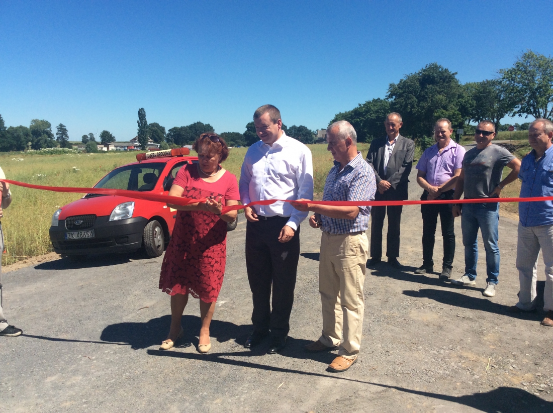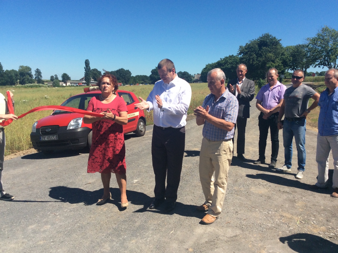 Wicemarszałek Jarosław Rzepa odbiera pierwszą w tym roku drogę dojazdową do gruntów rolnych. To odcinek pomiędzy Kunowem a Parnicą. Gmina Banie na realizację inwestycji otrzymała dofinansowanie ze środków budżetu Województwa Zachodniopomorskiego. Drogę uroczyście oddano do użytku 2 lipca 2015 r.