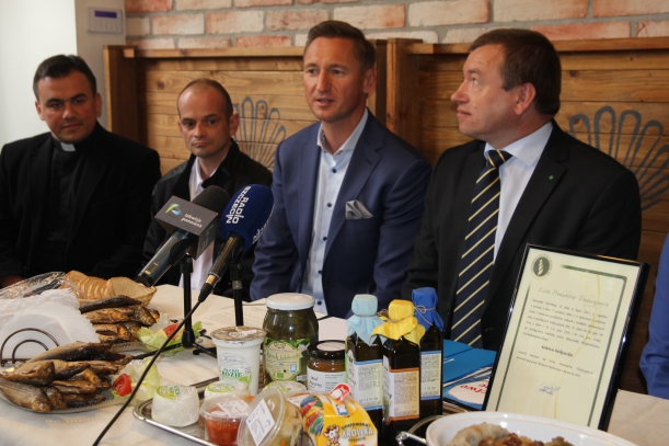 – Historia przedsiębiorstwa sięga roku 1991, kiedy otworzyliśmy smażalnię i wędzarnię ryb. Po dwóch latach powstał sklep spożywczo-przemysłowy – mówił podczas konferencji współwłaściciel rodzinnej firmy ze Starego Drawska Roman Perłak. –  Naszą specjalnością  jest sielawa wędzona z Pojezierza Drawskiego, która znajduje się na Liście Produktów Tradycyjnych. W sprzedaży znajduje się również: węgorz, sieja, lin, pstrąg, troć i łosoś wędzony. Z ryb smażonych godne polecenia są liny, okonie, szczupaki, sielawy, sieje i leszcze. Oferujemy także ryby w zalewie octowej – dodał.