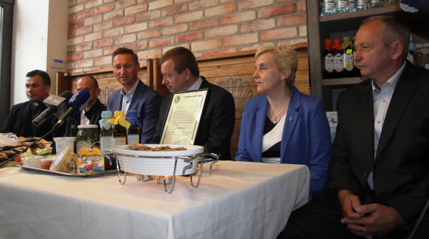 Konferencja prasowa w sklepie Jarmarku Jakubowego z udziałem Zarządu Województwa oraz nowych członków Sieci Dziedzictwa Kulinarnego Pomorza Zachodniego. Na spotkaniu obecni byli także państwo Pietruszkowie, którzy zgłosili 33. produkt tradycyjny.