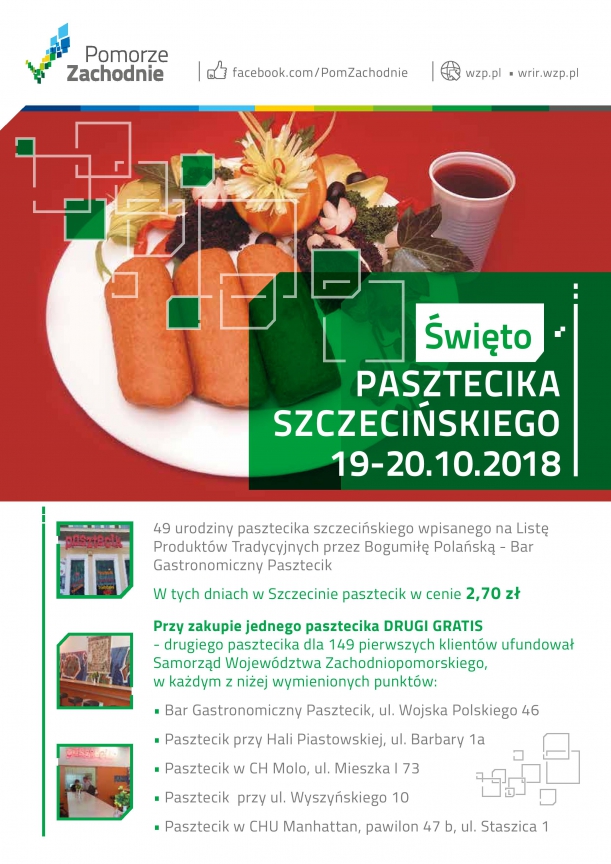 W tym roku Pasztecik Szczeciński już po raz czwarty celebruje swój dzień. Z okazji święta tego tradycyjnego, lubianego przez mieszkańców i turystów przysmaku wybrane szczecińskie punkty i bary zaserwują go w promocyjnej cenie. Akcja będzie trwała w dniach 19-20 października br.