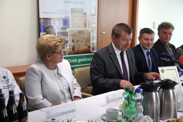 - Z targów Polagra w Poznaniu przywieźliśmy prawdziwy grad nagród, więc spotykamy się dziś w wyjątkowo licznym gronie. W tym roku to aż 5 „Pereł” i 3 „Klucze do Polskiej Spiżarni”. Od kilku lat Pomorze Zachodnie stało się liderem w tego typy konkurencjach, a nasze stoisko zawsze jest oblegane przez tłumy chętnych, którzy chcą spróbować zachodniopomorskich smaków - mówił wicemarszałek Jarosław Rzepa, który również pogratulował wytwórcom pasztecików gdowskich, nowego produktu tradycyjnego – Wiem, że są przepyszne. A dodatkową dobrą wiadomością jest fakt, że dzieło pani Danuta Szlaz kontynuuje syn. Jak widać, kolejne pokolenia przejmują pasję opieki nad naszym kulinarnym dziedzictwem.