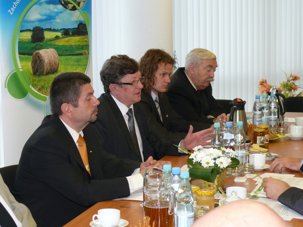 24 października br. w siedzibie Wydziału Rolnictwa i Rybactwa Zachodniopomorskiego Urzędu Marszałkowskiego przy ul. Małopolskiej 12 w Szczecinie odbyło się spotkanie robocze z przedstawicielami związków pszczelarskich działających w województwie zachodniopomorskim. W spotkaniu uczestniczył członek zarządu Jan Krawczuk, prezydent Polskiego Związku Pszczelarskiego Tadeusz Sabat oraz reprezentanci Zachodniopomorskiej Izby Rolniczej, Związku Kółek i Organizacji Rolniczych i ZUT. Celem dyskusji, czasami bardzo żywej, było wypracowanie propozycji form wsparcia dla zachodniopomorskich pszczelarzy w oparciu o środki UE, które według informacji jakie przekazał Pan Sabat są możliwe do pozyskania w obecnej perspektywie finansowania. Rozmowy zakończyły się deklaracją dalszej współpracy przy opracowaniu programu wsparcia pszczelarstwa w województwie zachodniopomorskim.