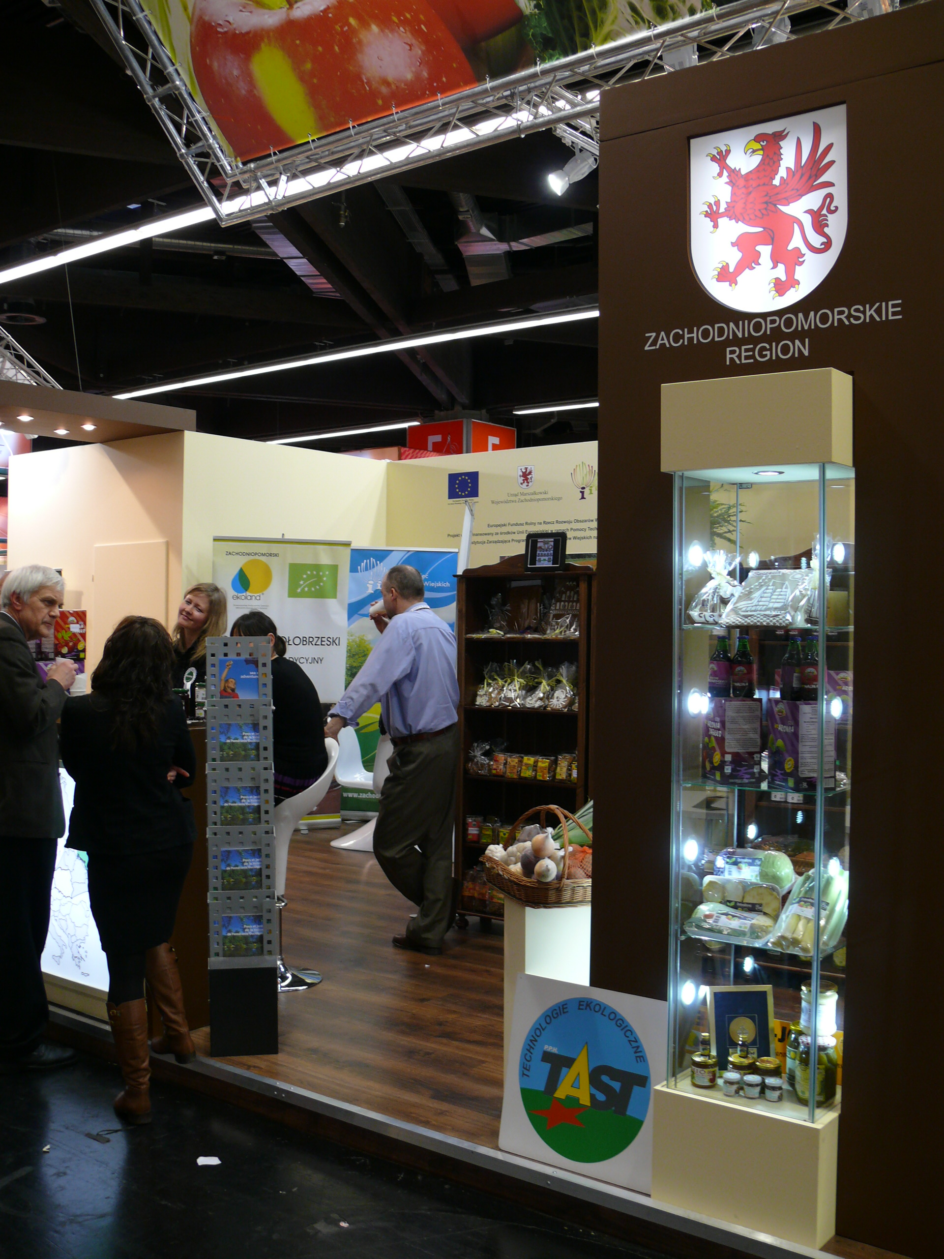 Urząd Marszałkowski Województwa Zachodniopomorskiego we współpracy z Ministerstwem Rolnictwa i Rozwoju Wsi, zorganizował stoisko promocyjne o powierzchni 30m2 z ofertą polskich żywnościowych produktów ekologicznych wytwarzanych w naszym regionie. Dzięki wsparciu finansowemu wojewódzkich władz samorządowych Województwo Zachodniopomorskie reprezentowane było przez: Grupę Producentów Owoców i Warzyw „Pomorze” Sp. z o.o. z Żabina , Przedsiębiorstwo Produkcyjno-Handlowe „TAST” ze Szczecina, Gospodarstwo Ekologiczne Dobrodziej z Żeliszewa oraz Stowarzyszenie Producentów Owoców i Warzyw Metodami Ekologicznymi ,,Ekoland” ze Świdwina. Wszyscy wystawcy zobligowani byli do posiadania certyfikatów zgodności produkcji metodami ekologicznymi wydanego przez Jednostkę Certyfikującą dla produktów spożywczych, które prezentowali podczas targów. Stoisko Województwa Zachodniopomorskiego oferowało zwiedzającym miedzy innymi soki Grupy Pomorze, przetwory ekologiczne z owoców i warzyw, warzywa ekologiczne Państwa Dobrodziej. Odwiedzających Targi przyciągały również pięknie zdobione pierniki szczecińskie, ekologiczne ciasteczka oraz przekąski prezentowane przez Jana Tabińskiego z firmy Tast. Dużym zainteresowaniem cieszył się ogórek kołobrzeski jak również miód malinowy (Ekoland).