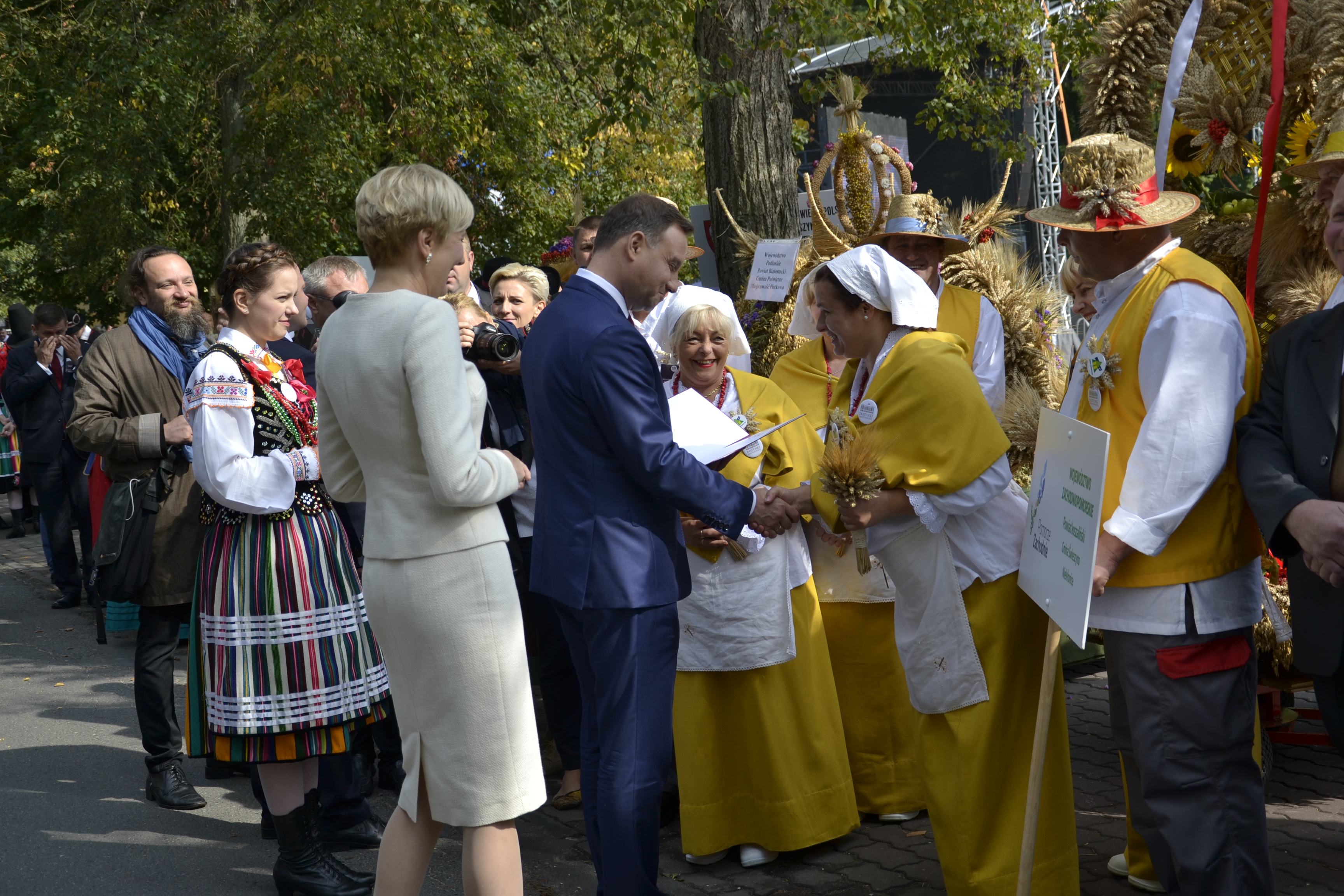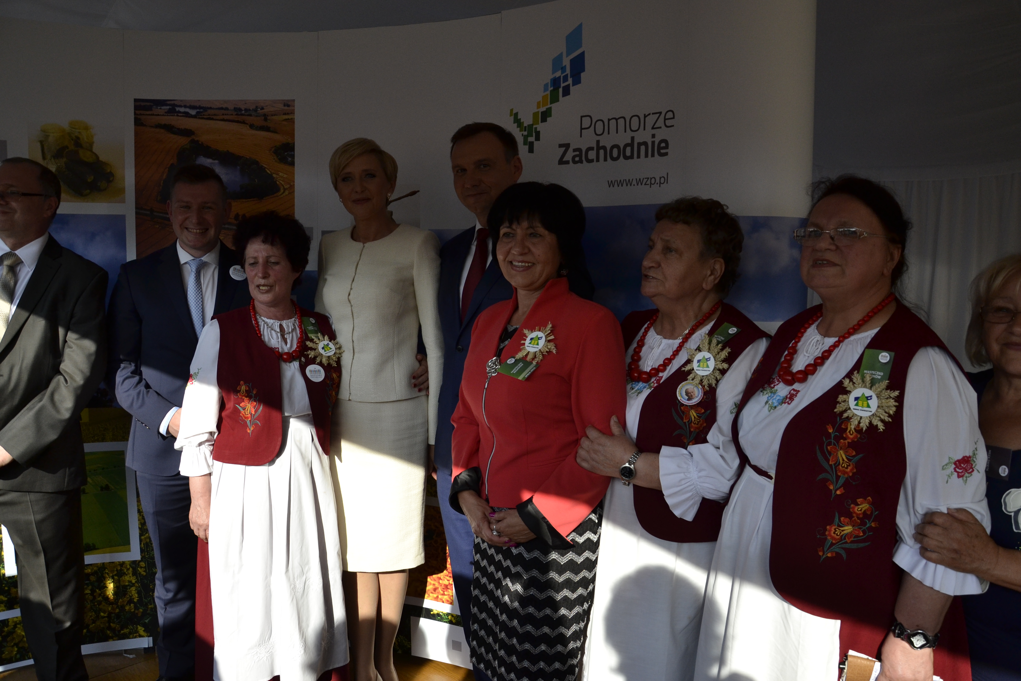 Stoisko Województwa odwiedziła między innymi Para Prezydencka, którą powitali Andrzej Binka, dyrektor Wydziału Rolnictwa i Rybactwa Urzędu Marszałkowskiego reprezentujący zarząd Województwa, oraz Ewa Korczak, wójt Gminy Świeszyno. Na koniec wizyty dostojnym gościom został wręczony kosz z wyrobami lokalnymi naszego regionu.
