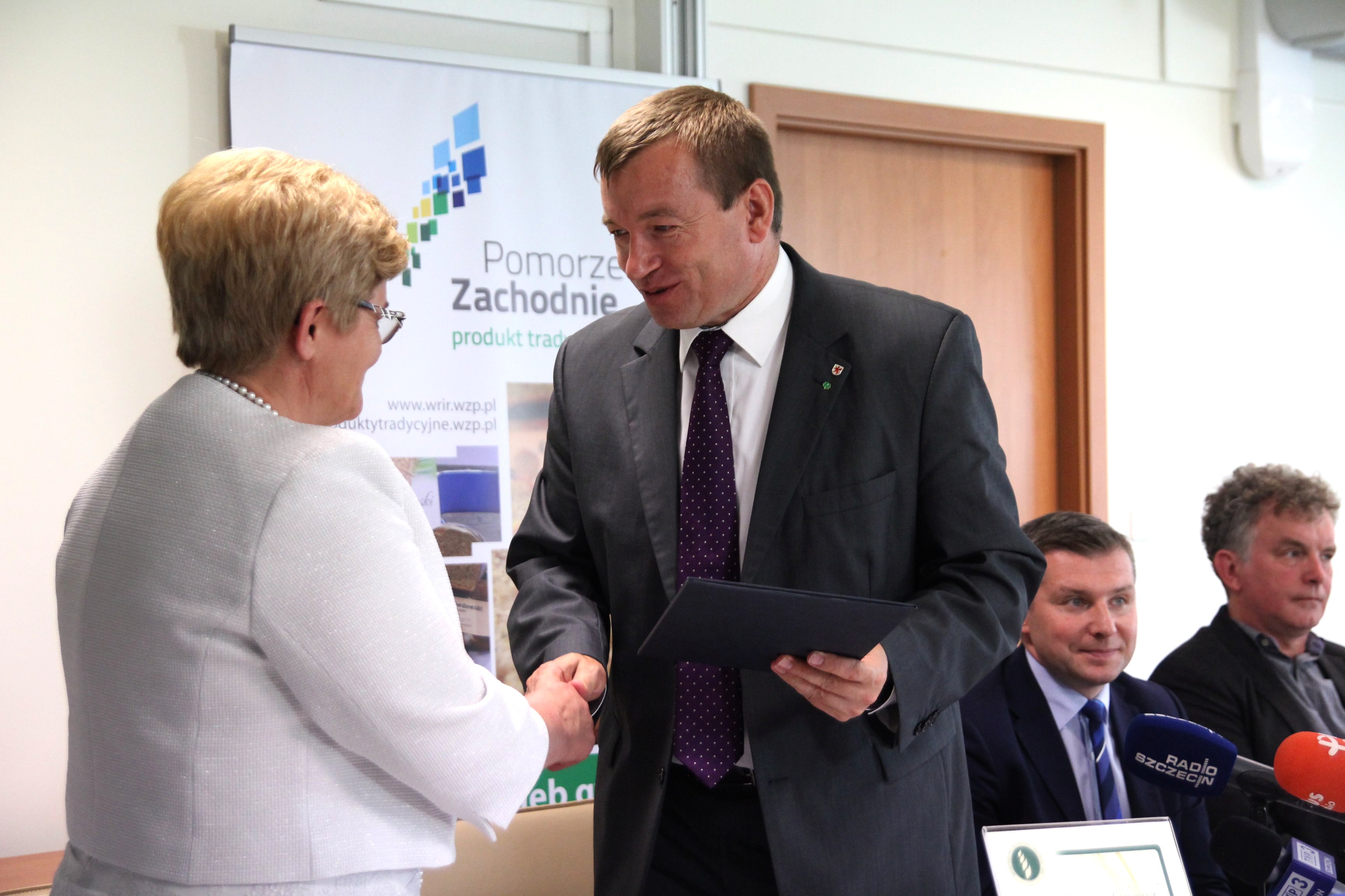 - Z targów Polagra w Poznaniu przywieźliśmy prawdziwy grad nagród, więc spotykamy się dziś w wyjątkowo licznym gronie. W tym roku to aż 5 „Pereł” i 3 „Klucze do Polskiej Spiżarni”. Od kilku lat Pomorze Zachodnie stało się liderem w tego typy konkurencjach, a nasze stoisko zawsze jest oblegane przez tłumy chętnych, którzy chcą spróbować zachodniopomorskich smaków - mówił wicemarszałek Jarosław Rzepa, który również pogratulował wytwórcom pasztecików gdowskich, nowego produktu tradycyjnego – Wiem, że są przepyszne. A dodatkową dobrą wiadomością jest fakt, że dzieło pani Danuta Szlaz kontynuuje syn. Jak widać, kolejne pokolenia przejmują pasję opieki nad naszym kulinarnym dziedzictwem.