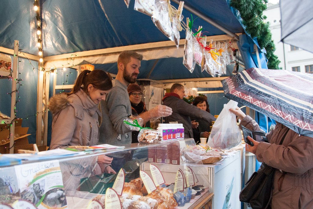 Przez cały czas trwania imprezy, na kiermaszu rękodzieła artystycznego można było zakupić ręcznie wykonane ozdoby choinkowe, wianki świąteczne, przytulanki, oryginalną biżuterię i wiele innych drobiazgów. Na straganach znalazły się również regionalne specjały: sery, wędliny, ryby, miody, słodycze, ciepłe napoje i wiele innych pyszności. Dla amatorów tradycyjnej lokalnej kuchni przygotowano pokazy kulinarne, które prowadzili kucharze z kołobrzeskich restauracji: Andrzej Jakomulski- Szef Kuchni w Restauracji La Maison w Hotel Leda**** w Kołobrzegu oraz Jacek Krakowiak – Szef Kuchni w Restauracji Horyzont w Hotel Aquarius SPA***** w Kołobrzegu. Odwiedzający Jarmark mogli spróbować takich specjałów jak: