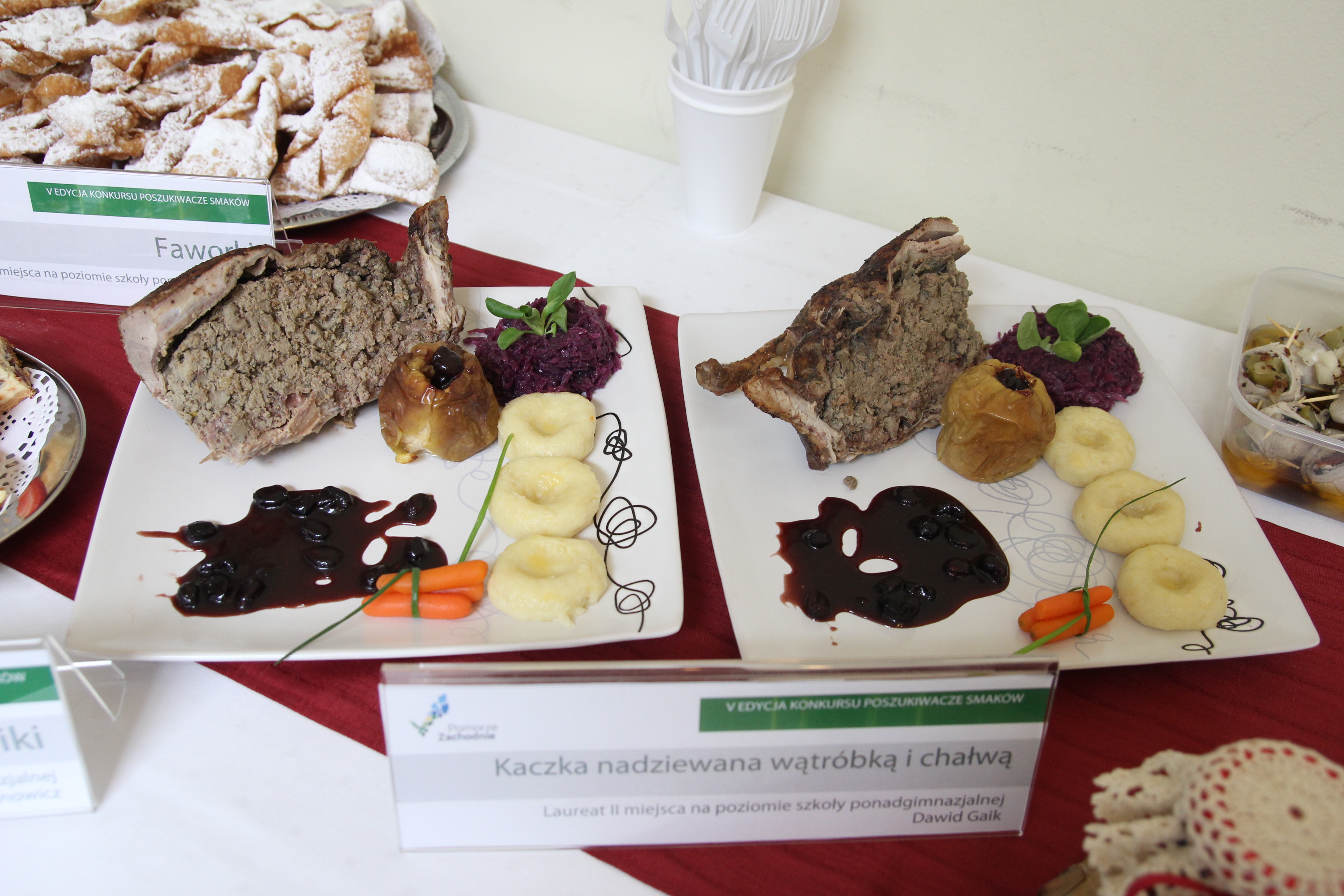 Weronika Zdanowicz ze Szczecina pokonała 8-miu rywali i dzięki „Sernikowi z żurawiną babci Ludwiki” zdobyła I miejsce na poziomie szkół ponadgimnazjalnych. Wyjątkowa puszystość i delikatność uzyskana jest przez dodanie ugotowanych ziemniaków. Żurawina powoduje delikatną kwaskowatość, która przełamuje słodycz ciasta – informuje laureatka. „Kaczka nadziewana wątróbką i chałwą” Dawida Gaika z Pyrzyc znalazła się na miejscu II. Chrupkie, cieniutkie ciasteczka o słodkim smaku czyli „Faworki” Urszuli Jager ze Szczecina zajęły miejsce III.