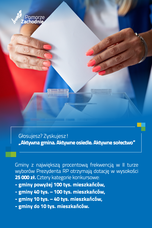 Rozwijanie demokracji lokalnej i społeczeństwa obywatelskiego to jedno z wielu zadań wpisujących się w realizację Strategii Rozwoju Województwa Zachodniopomorskiego do roku 2030. Jednym z wyznaczników zaangażowania społecznego jest udział w wyborach. Marszałek Województwa Zachodniopomorskiego poprzez konkurs „Aktywna gmina. Aktywne osiedle. Aktywne sołectwo” chce nagrodzić gminy, które osiągną najwyższą frekwencję wyborczą. W puli dla najaktywniejszych jest łącznie 100 tys. zł.